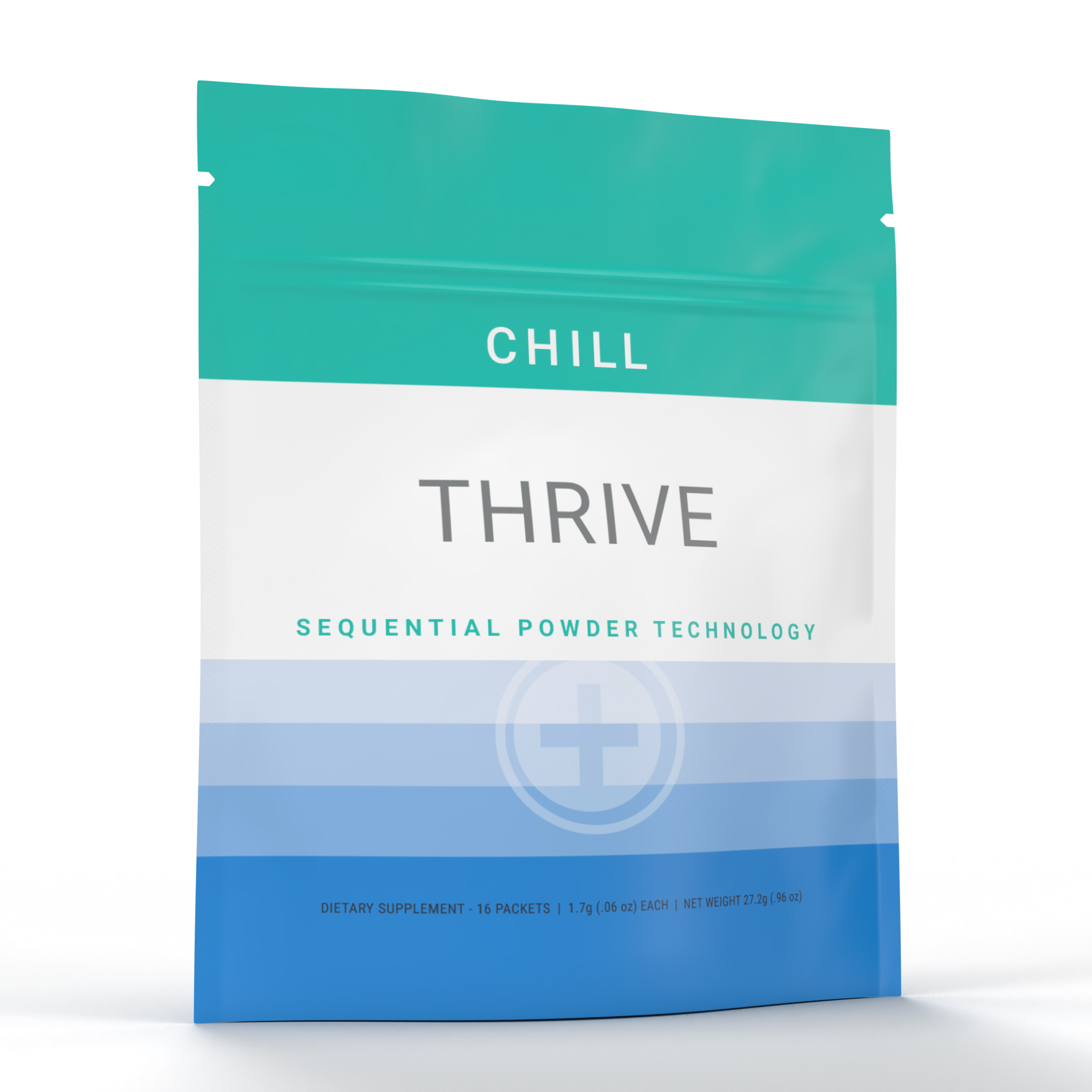 The THRIVE SPT Chill packet is poured directly into the mouth and dissolves instantly to provide benefits FAST! Take CHILL any time, day or night, in addition to the 3 steps of your THRIVE Experience to feel better & reduce stress.